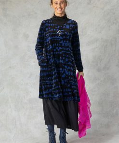 Gudrun Sjödén Women’s Clothes “mona” Jersey Dress In Cotton/spandex | Indigo Blue & Patterned