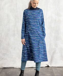 Gudrun Sjödén Women’s Clothes “mona” Jersey Dress In Cotton/spandex | Indigo Blue & Patterned