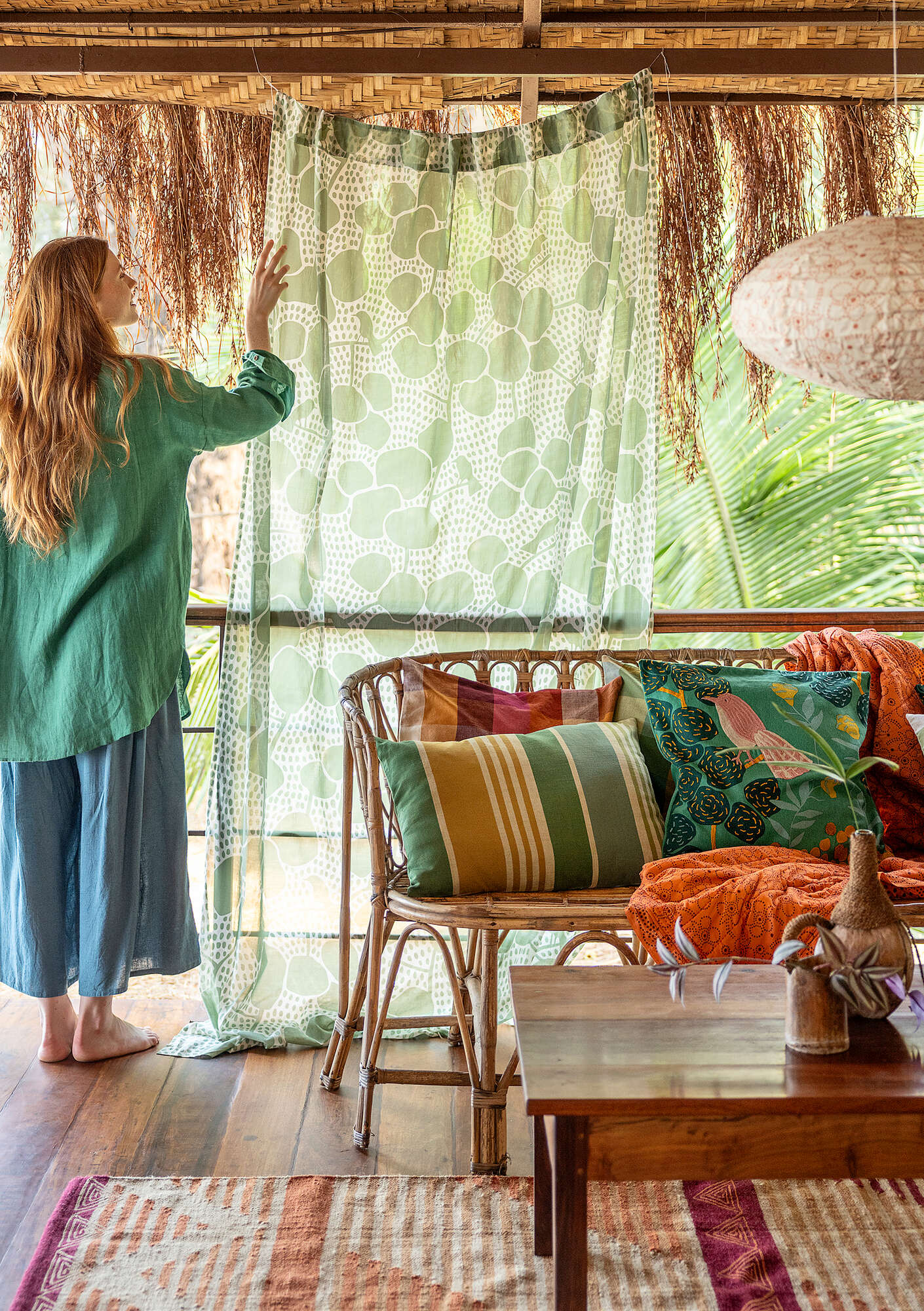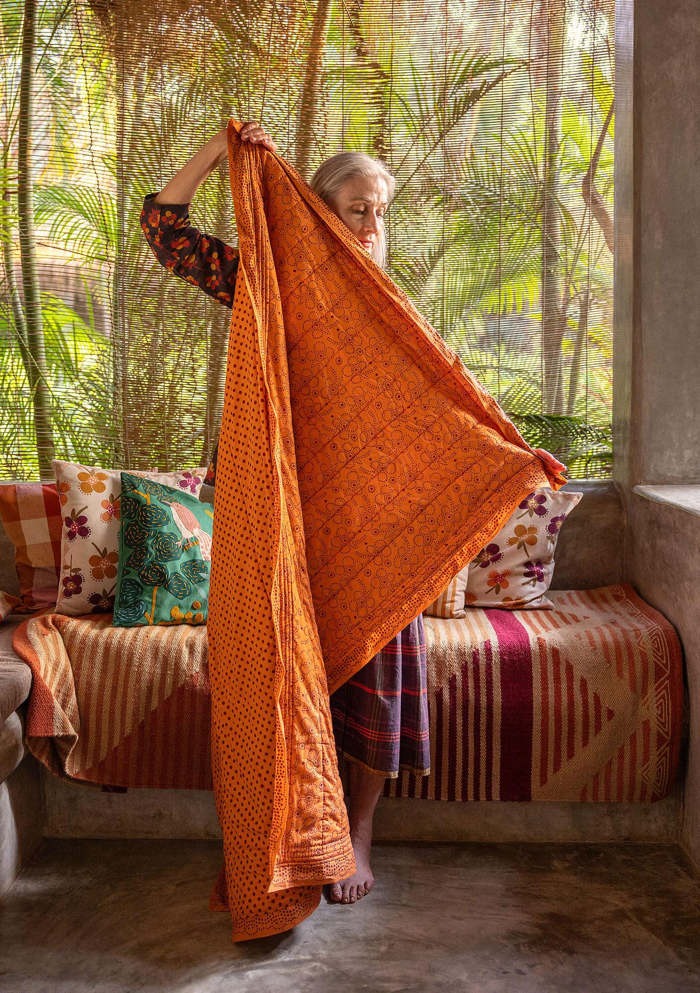 - 90% wool/10% cotton. Wool weft and cotton warp. Dry clean. Made in Panipat, India.