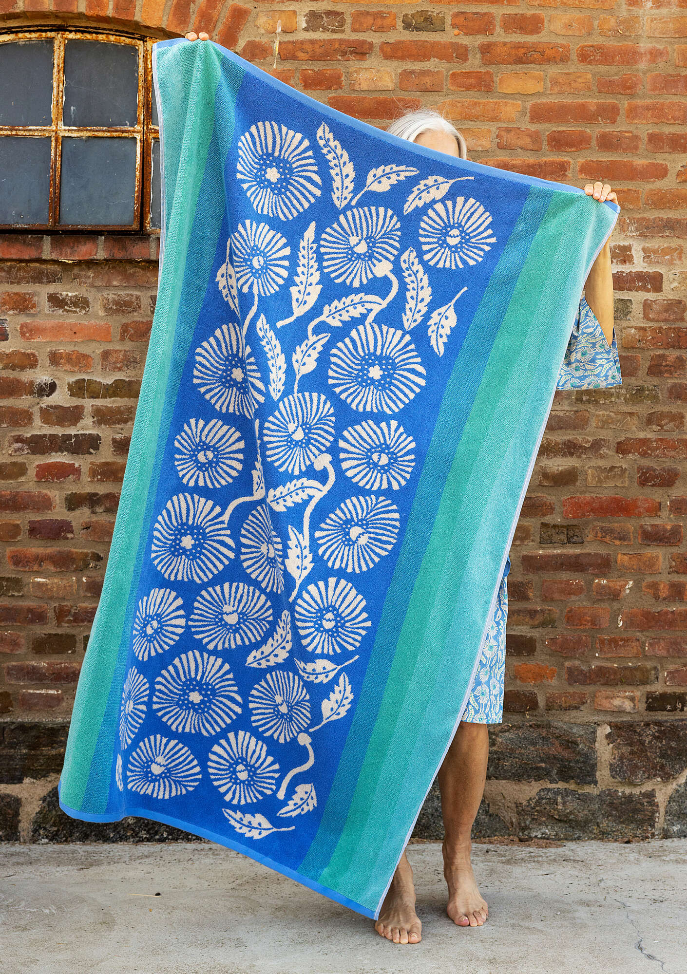 Gudrun Sjödén Homeware Homeware “poppies” Bath Sheet In Organic Cotton | Sea Blue