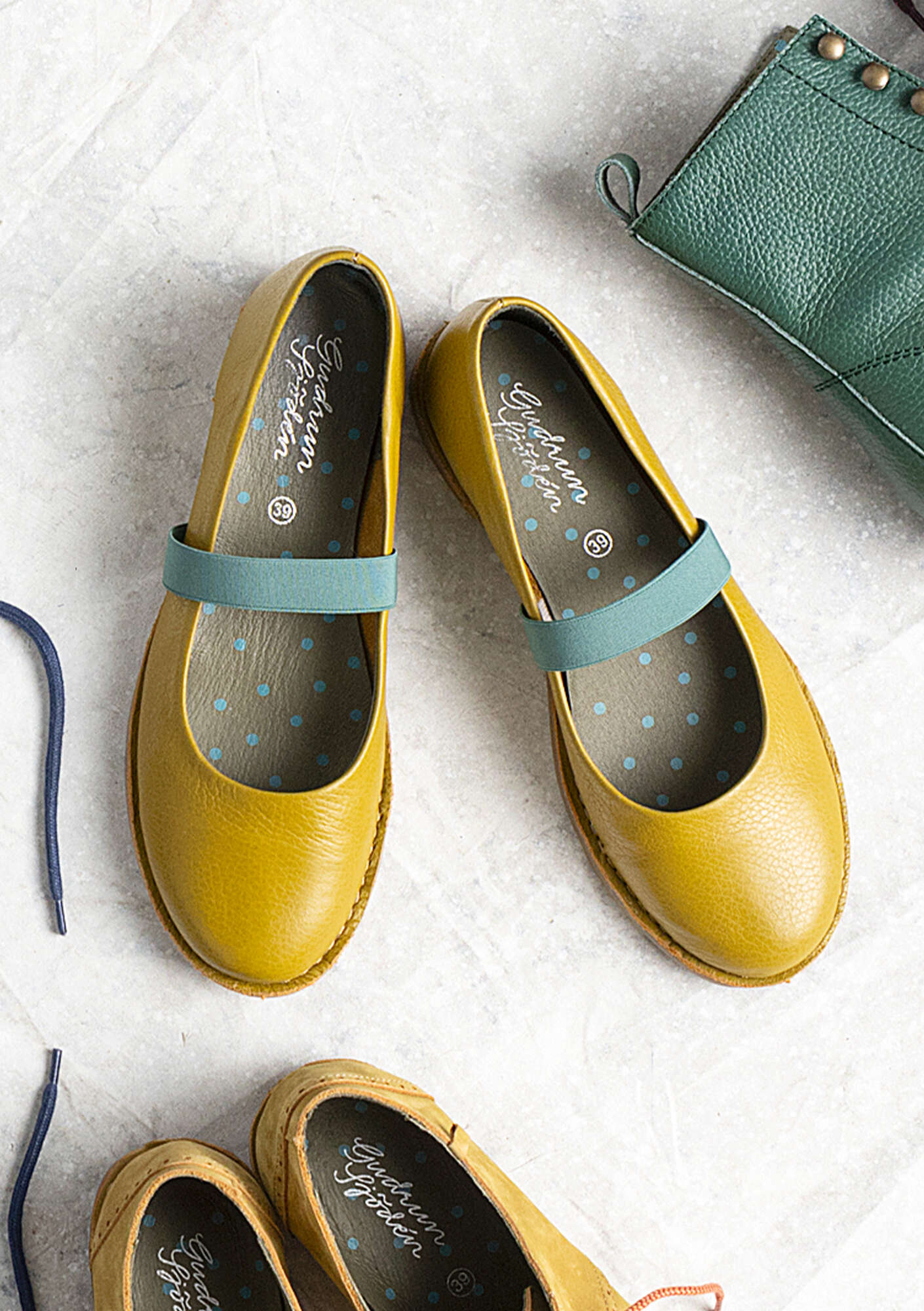 - Lovely little ballerina flats. Comfortable elastic across the foot to keep the shoe in place. Dotted insoles.Material and Production