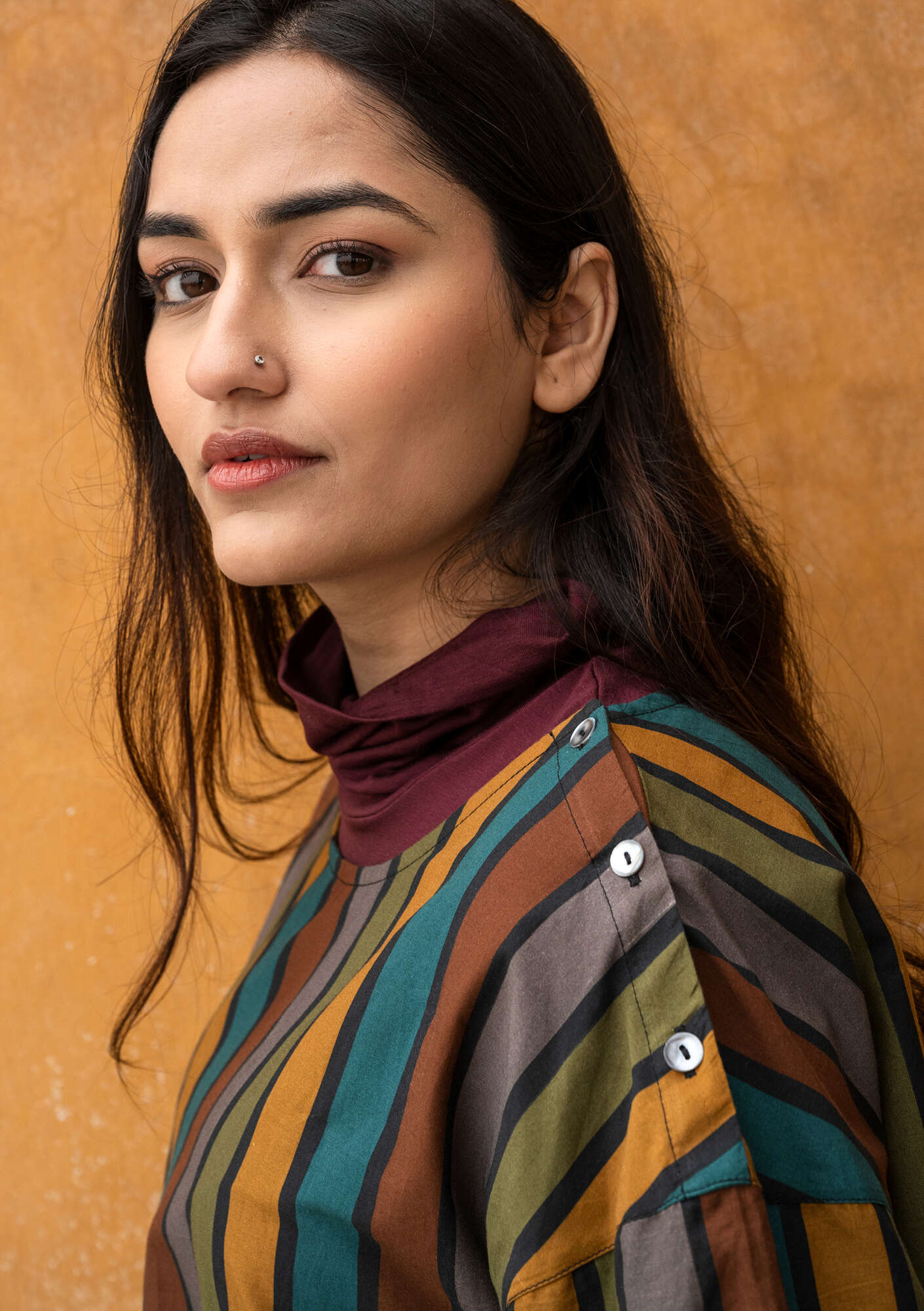 - 100% cotton. The cotton is certified organic. The fabric is digitally printed. The entire production chain is certified. Machine wash warm, delicate cycle. Made in Kundli, India.