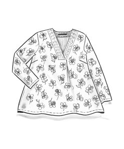 - Digitally printed blouse with an overlapping V-neck. Beautifully detailed with embroidery that also runs across the back. Style with long sleeves and a pleat at the front for a bit of extra width.Size and Measurement