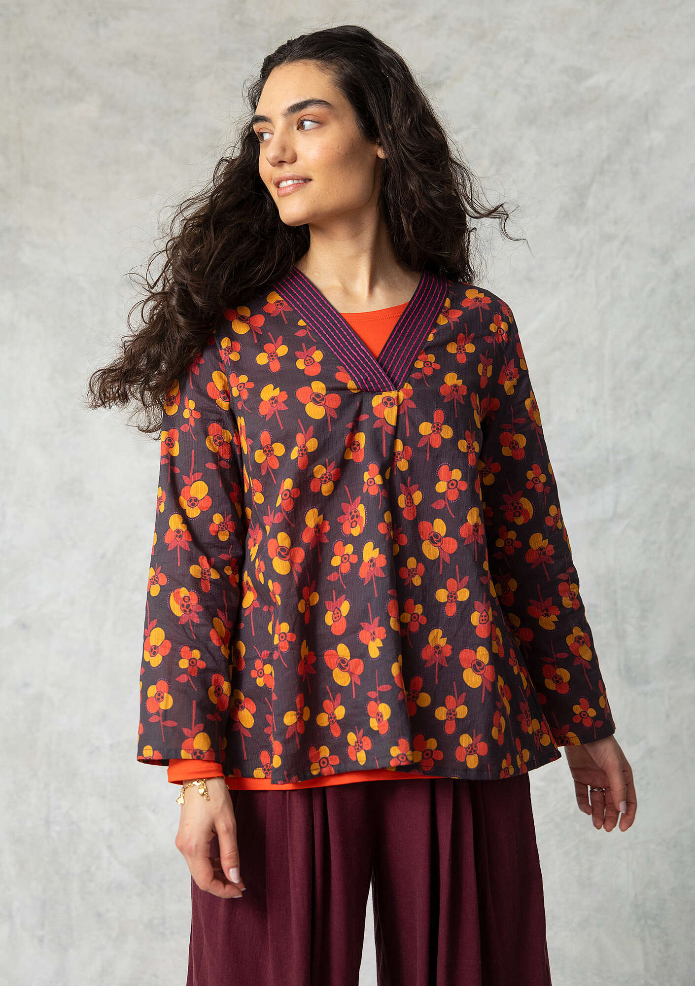- Digitally printed blouse with an overlapping V-neck. Beautifully detailed with embroidery that also runs across the back. Style with long sleeves and a pleat at the front for a bit of extra width.Size and Measurement