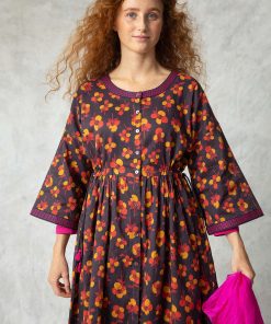 - 100% cotton. The cotton is certified organic. The garment is digitally printed and the print is certified. Machine wash warm, delicate cycle. Medium iron. Shrinkage 2-3%. Made in Faridabad, India.