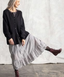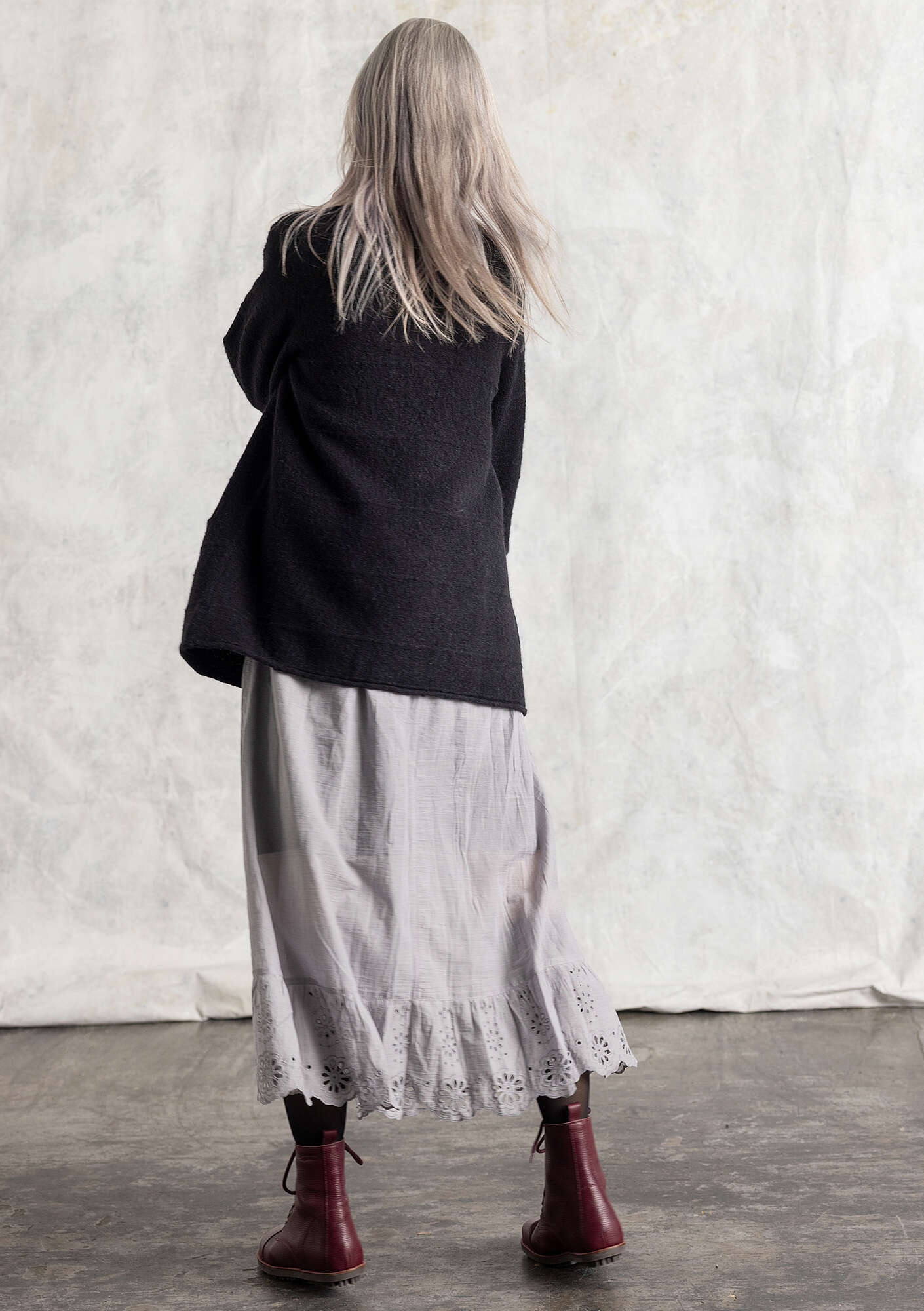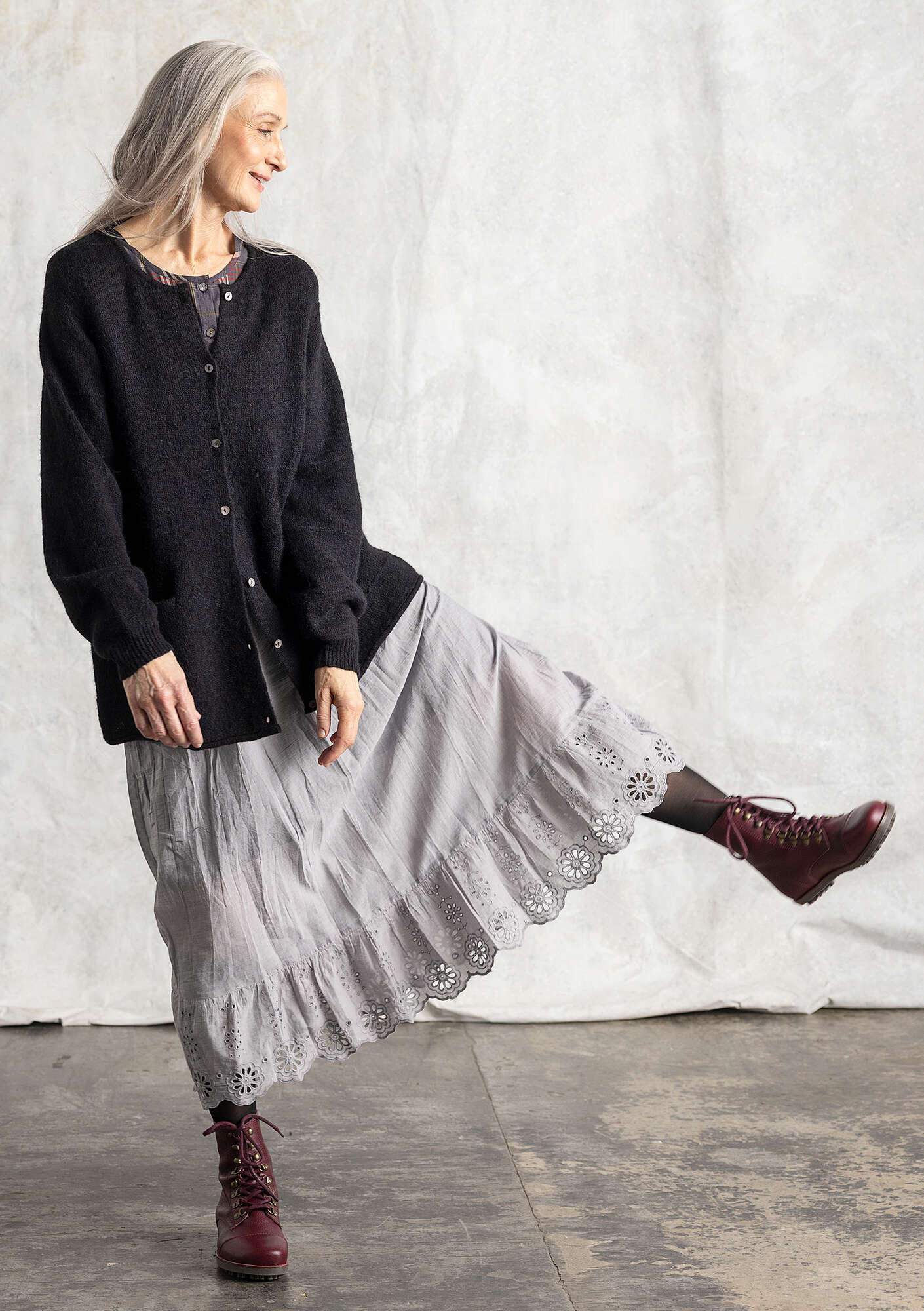 - 25% wool/25% alpaca/25% cotton/25% nylon. The cotton is certified organic. The wool is mulesing-free. Even the finest wool may be subject to some pilling after repeated wear. Carefully remove any pilling. We suggest airing this garment or steaming with an iron. As a last option, hand wash cold or wash in the washing machine set to the wool-wash cycle. Use wool detergent. Gently reshape while damp. Dry flat. Store flat. Shrinkage 4-5%. Made in Dongguan, China.