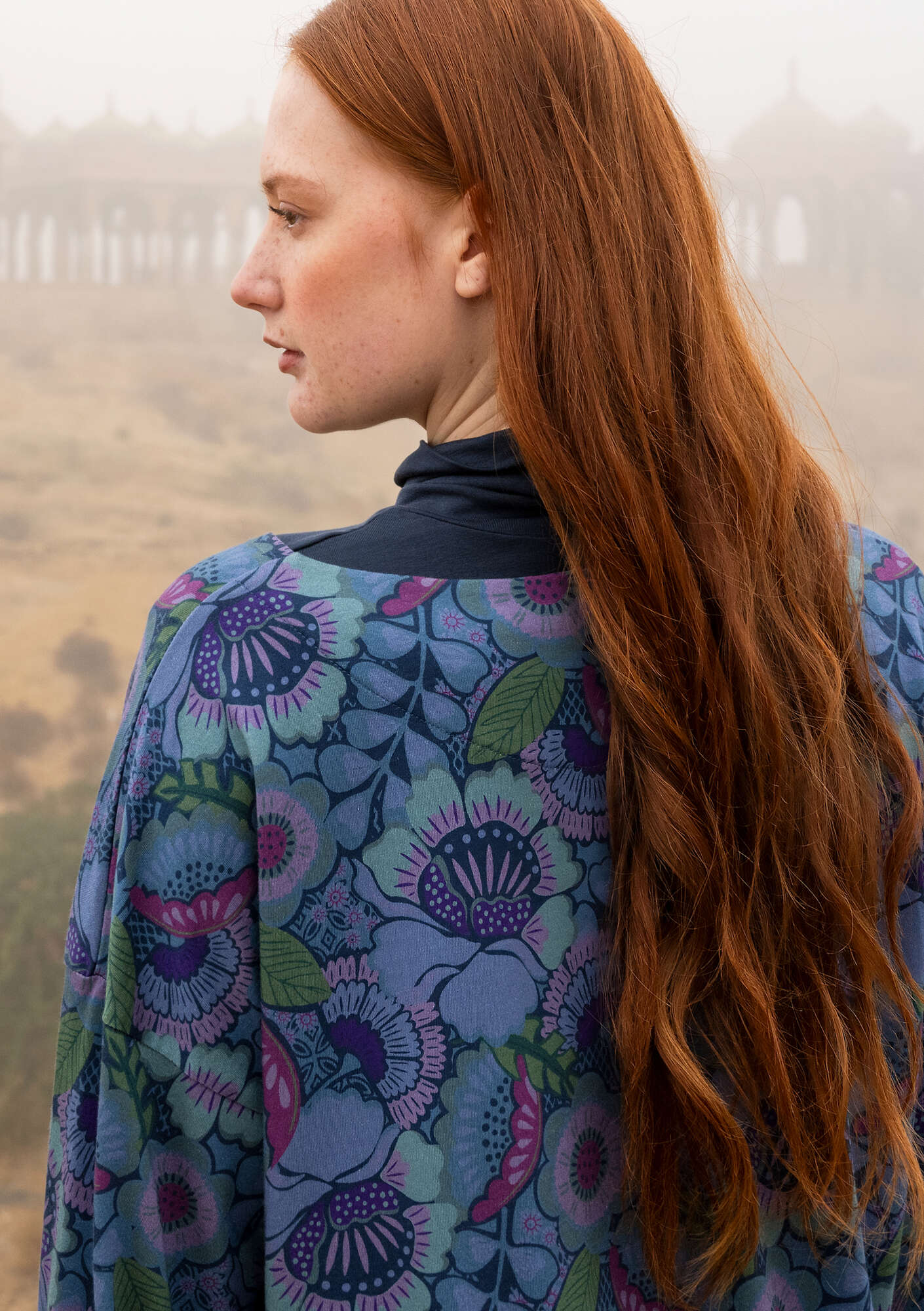 - Digitally printed jersey top patterned with big, beautiful flowers. Boxy style with a subtle boat neck and long sleeves.Size and Measurement