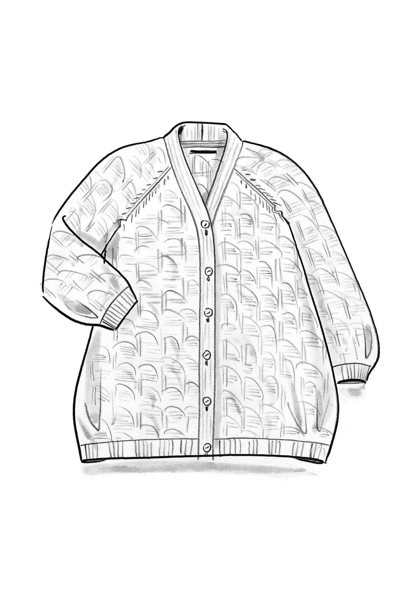 - Textured-knit long cardigan with a tortoiseshell-inspired pattern. Relaxed style with long raglan sleeves, rib-knit finishes, a V-neck and coconut wood buttons.Size and Measurement