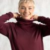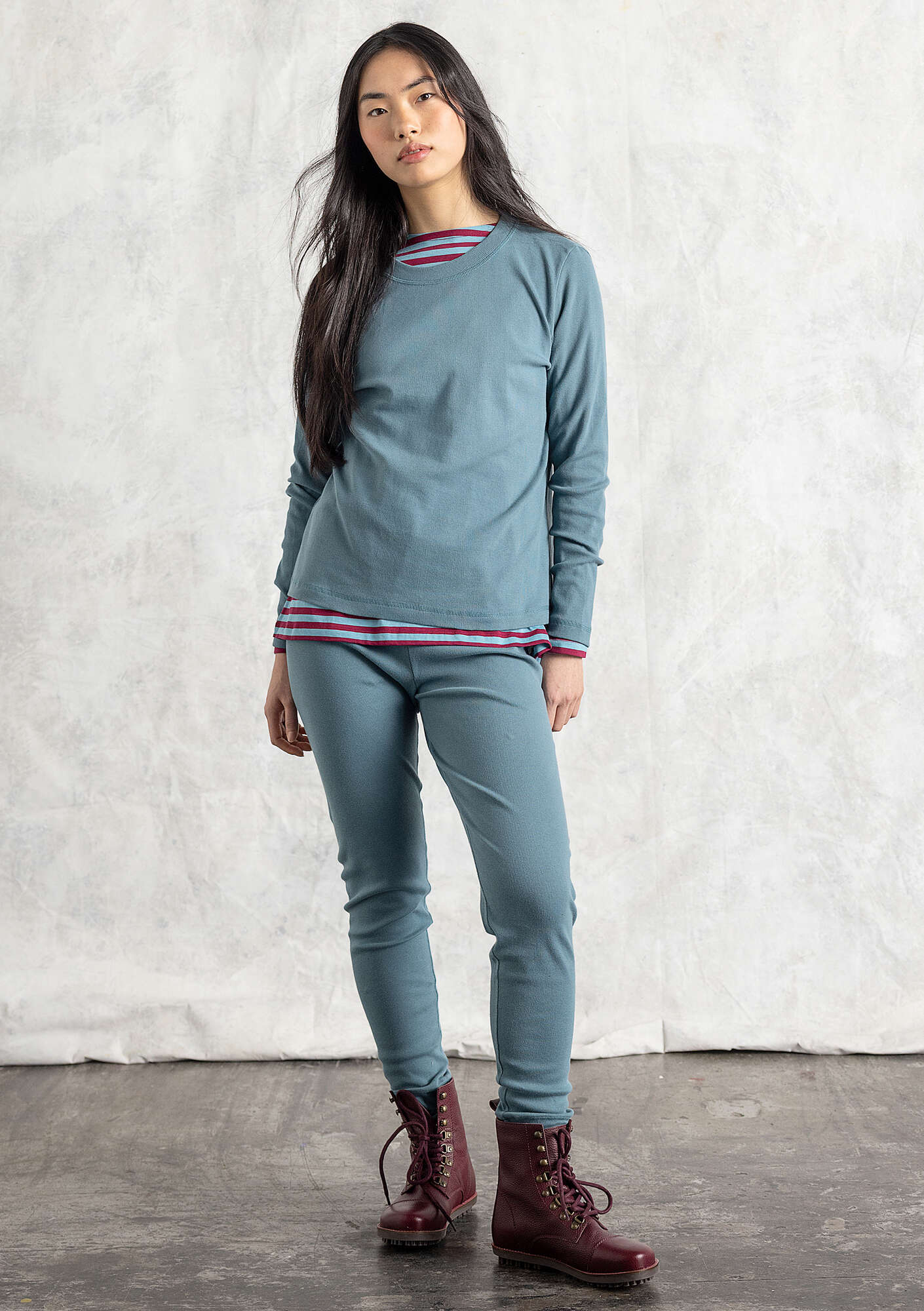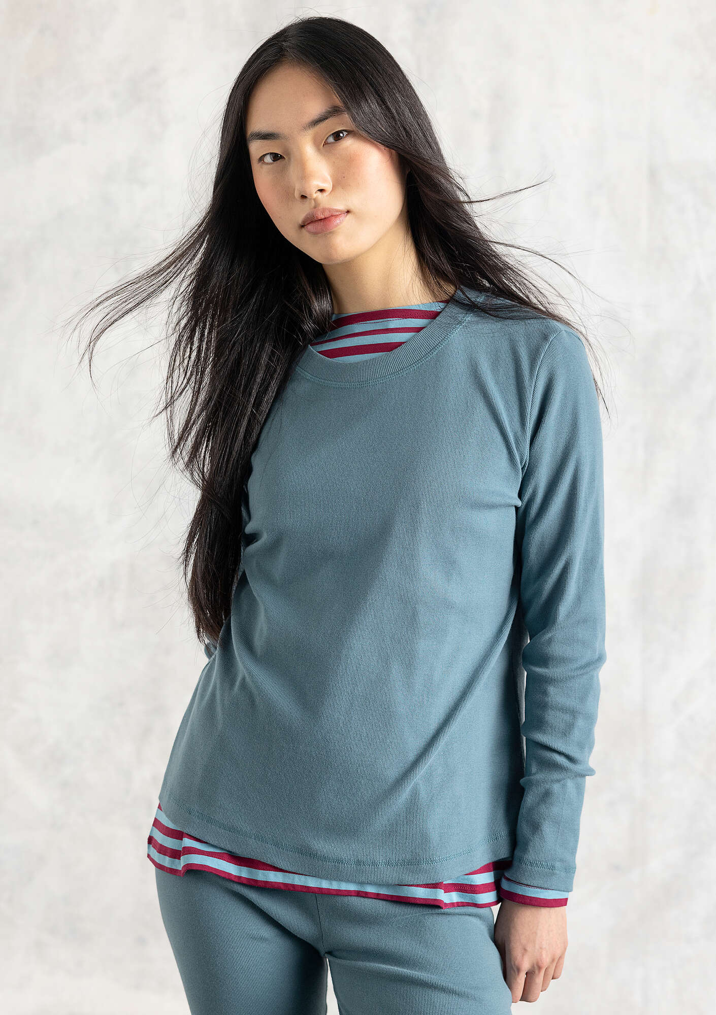 - Simple top in ribbed fabric. Long sleeves and decorative flatlock seams. Pretty accent-colored band at the neck.Size and Measurement