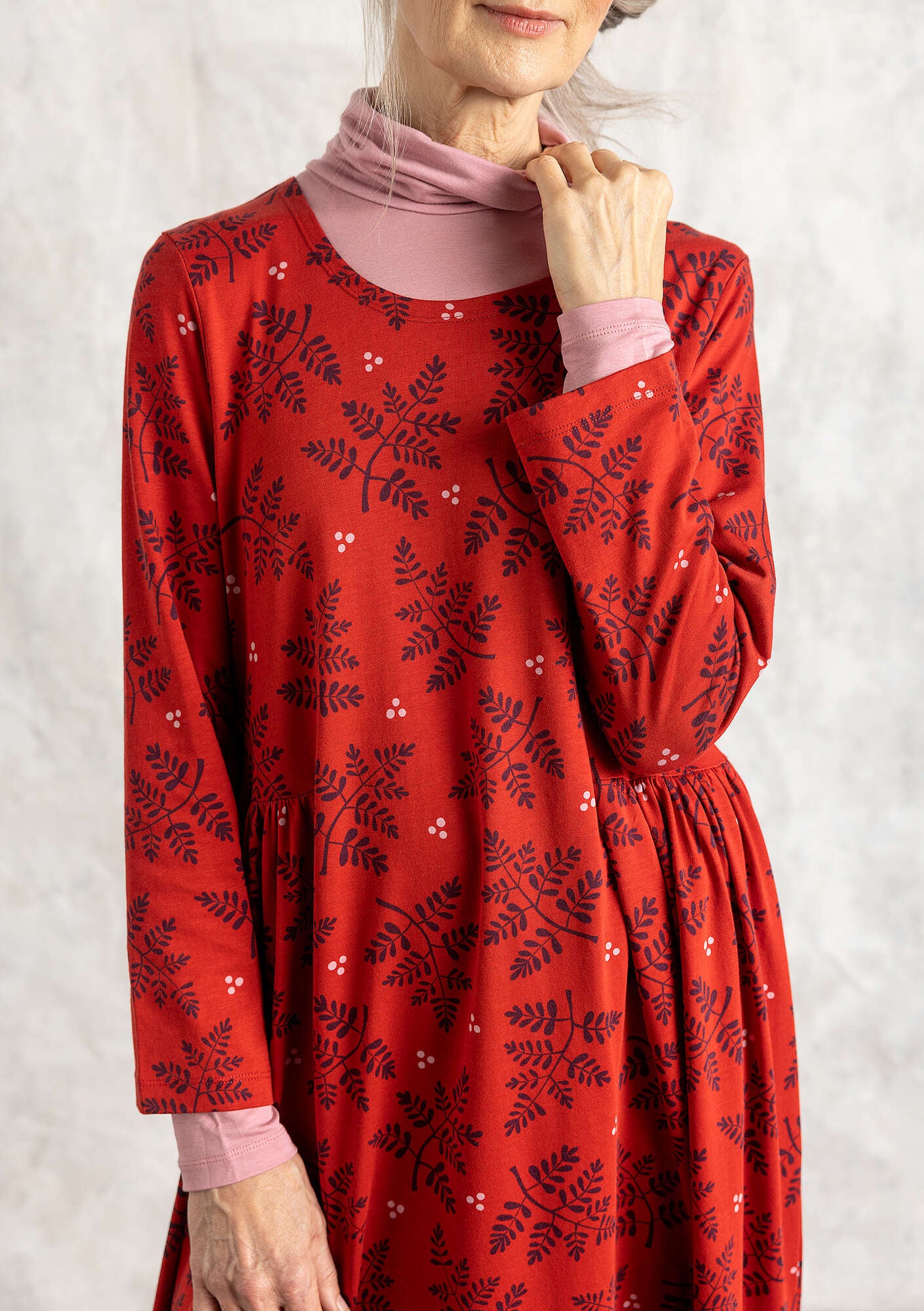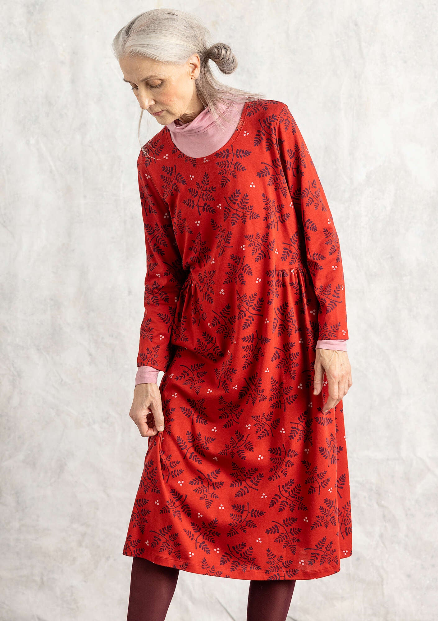 Gudrun Sjödén Women’s Clothes “judit” Jersey Dress In Organic Cotton/modal | Parrot Red & Patterned
