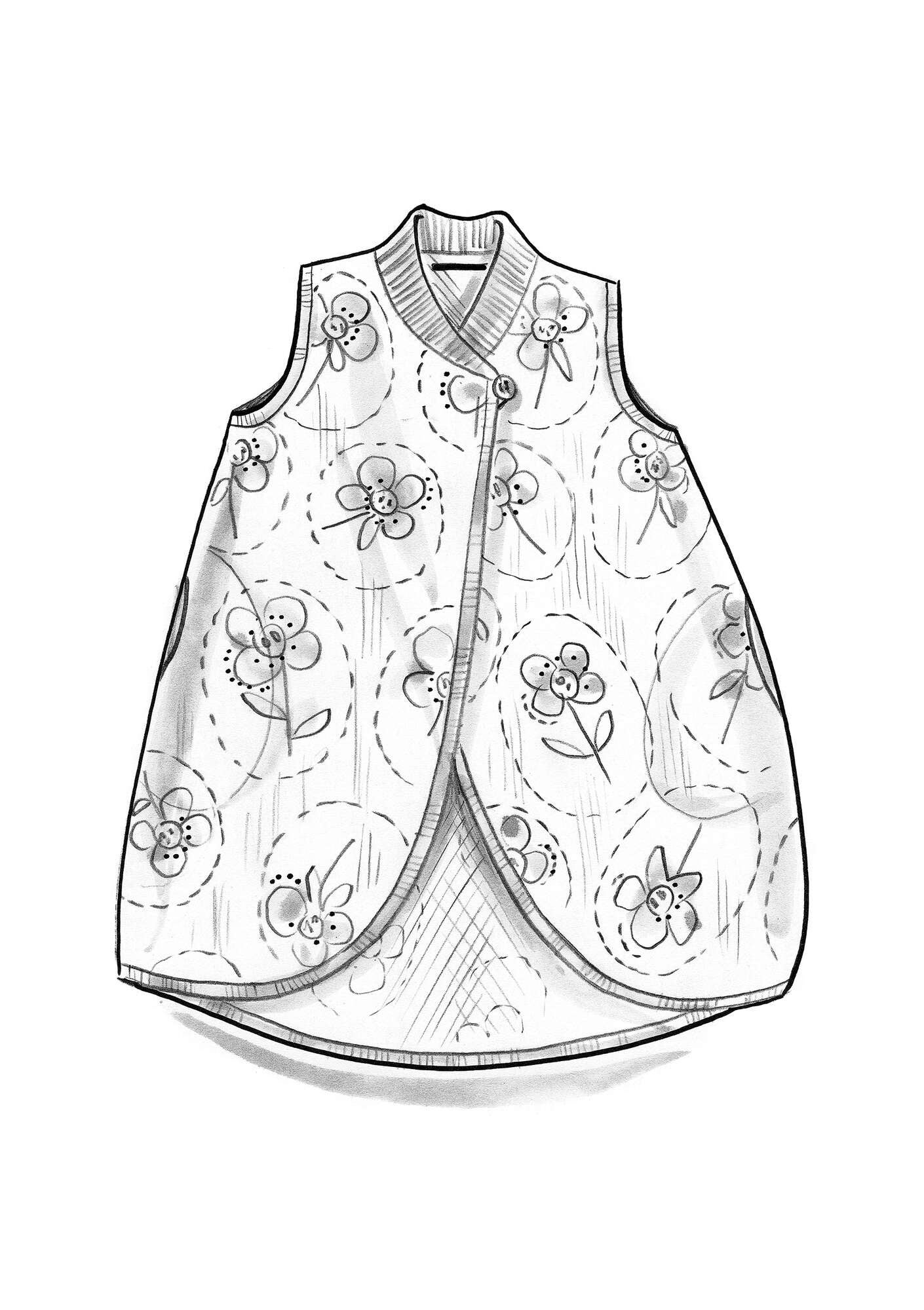 - Jacquard-knit long vest with a rib-knit collar. Knit band along the edge and side pockets. Slightly overlapping style with a coconut wood button on both the outside and inside of the garment.Size and Measurement