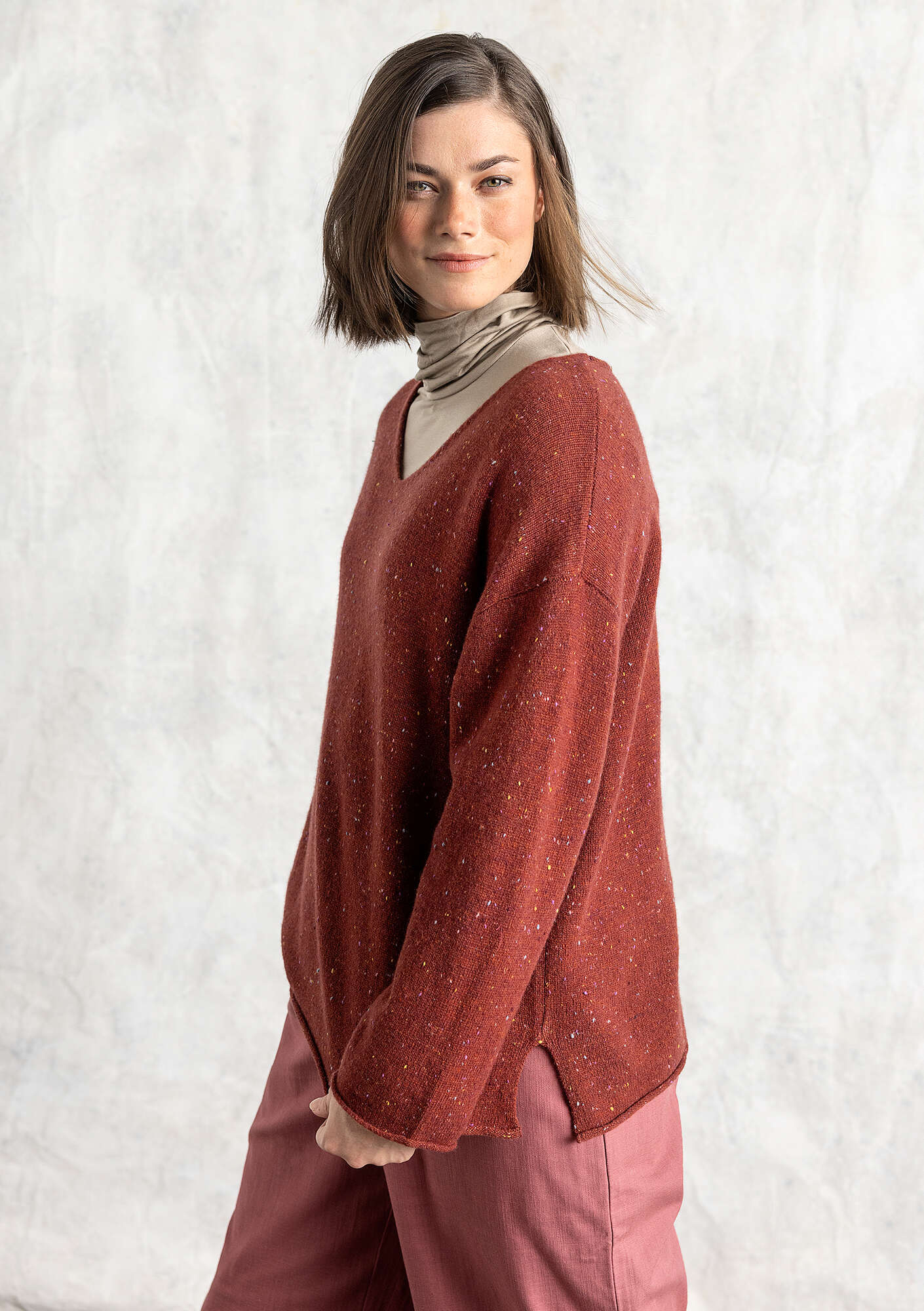 Gudrun Sjödén Women’s Clothes Nubby Sweater In A Lambswool Blend | Red Curry & Melange