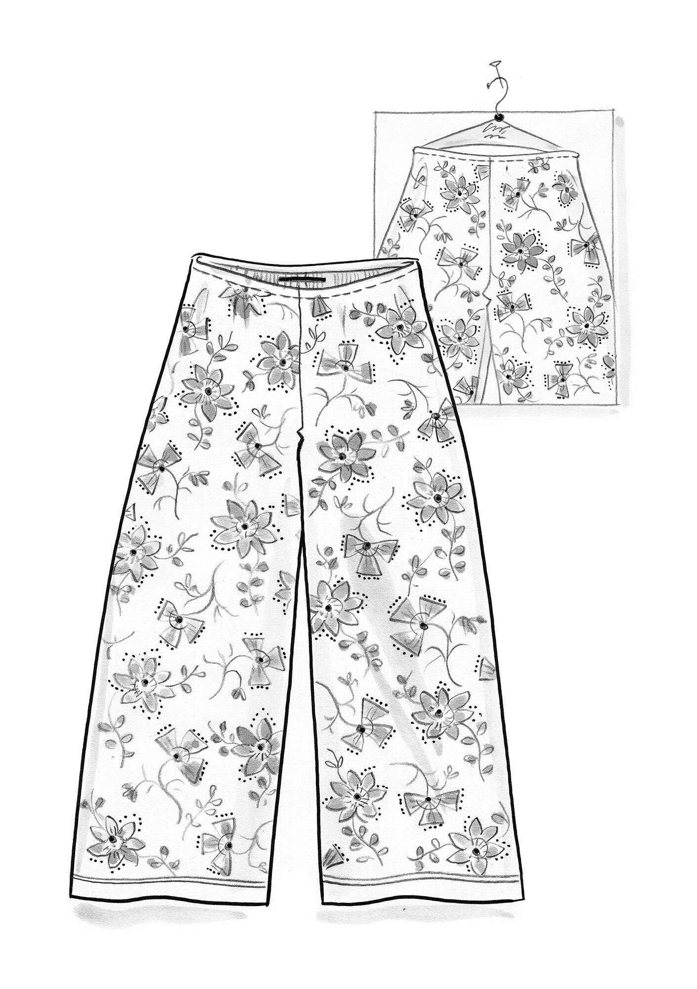 - Printed, ankle-length velour pants in a straight-cut style with an elastic waistband. Two different pattern designs, one floral and one graphic. Size and Measurement
