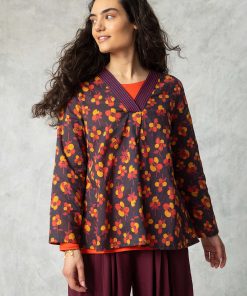 - 80% rayon/20% linen. LENZING™ ECOVERO™ Viscose fiber comes from controlled or certified wood sources and is produced with at least 50% less carbon dioxide emissions and water consumption compared to generic viscose.The linen is dew-retted, an environmentally friendly, natural process in which the sun and dew handle the work. The print and dyeing process are certified. Machine wash cold, delicate cycle. Medium iron. Shrinkage 3-4%. Made in Faridabad, India