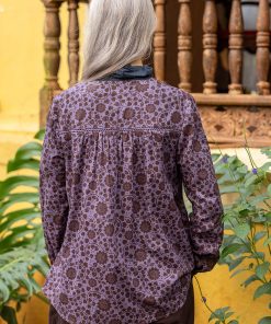 - Fully buttoned blouse with raglan puff sleeves. A lower tier gives this garment flattering width. Welt pockets with a button at the front. This fabric has an especially beautiful drape. Matte, dyed buttons.Size and Measurement