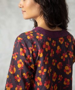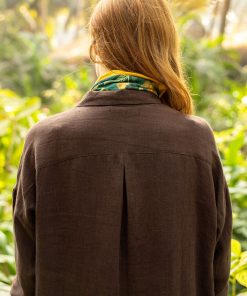 - 80% rayon/20% linen. LENZING™ ECOVERO™ Viscose fiber comes from controlled or certified wood sources and is produced with at least 50% less carbon dioxide emissions and water consumption compared to generic viscose.The linen is dew-retted, an environmentally friendly, natural process in which the sun and dew handle the work. The print and dyeing process are certified. Machine wash cold, delicate cycle. Medium iron. Shrinkage 3-4%. Made in Faridabad, India