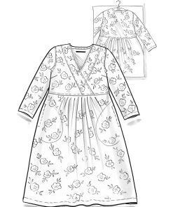 - V-neck style with a sewn overlap detail at the front. Three-quarter sleeves. Gathers at the center of the front and back provide a little extra width at the hem. Available printed and in yarn-dyed stripes. Side pockets.Size and Measurement