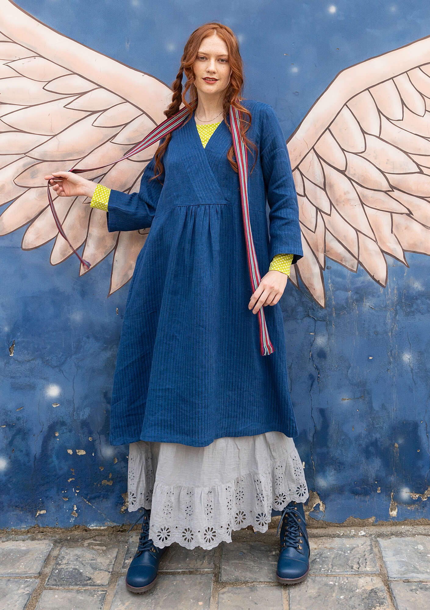 Gudrun Sjödén Women’s Clothes Woven “bodil” Dress In Linen | Indigo Blue