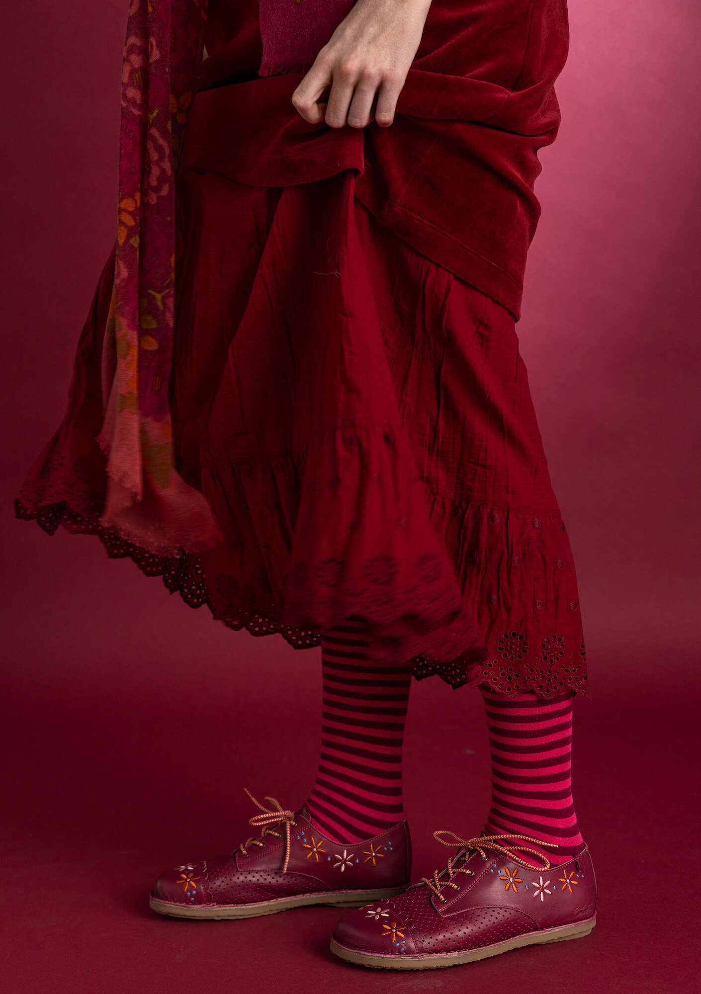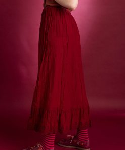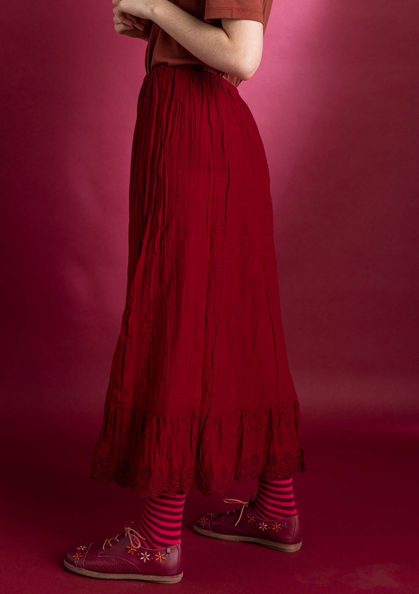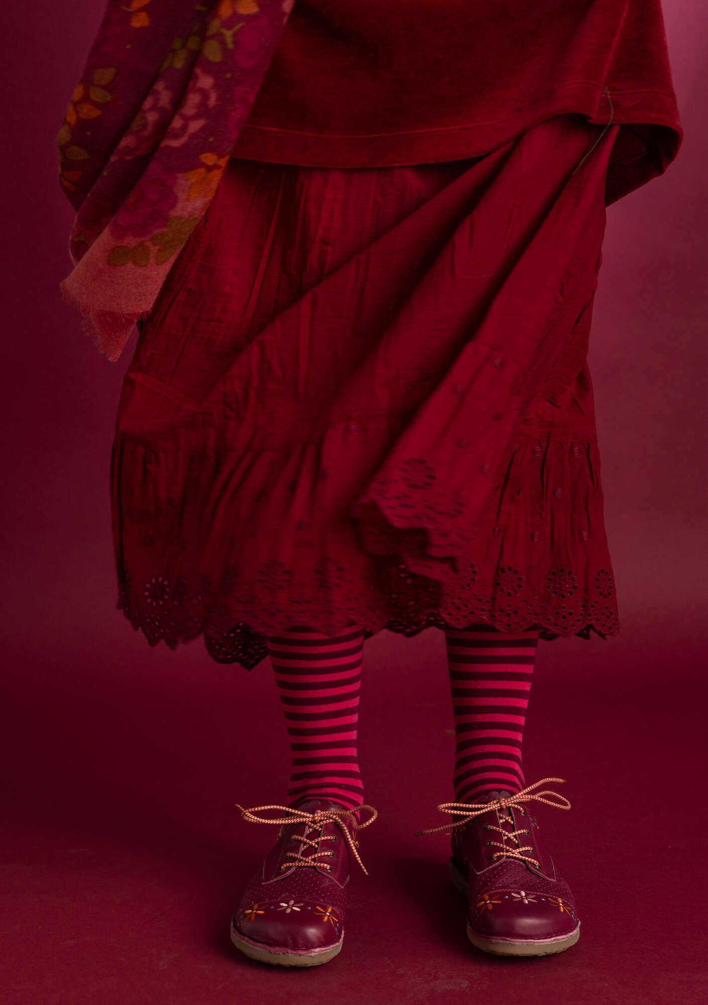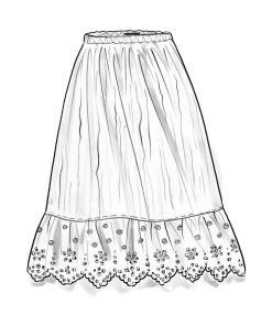 - A simple style with an elastic waist, embroidered dots and an eyelet lace hem. The elastic can be adjusted with a small button for a better fit.Size and Measurement