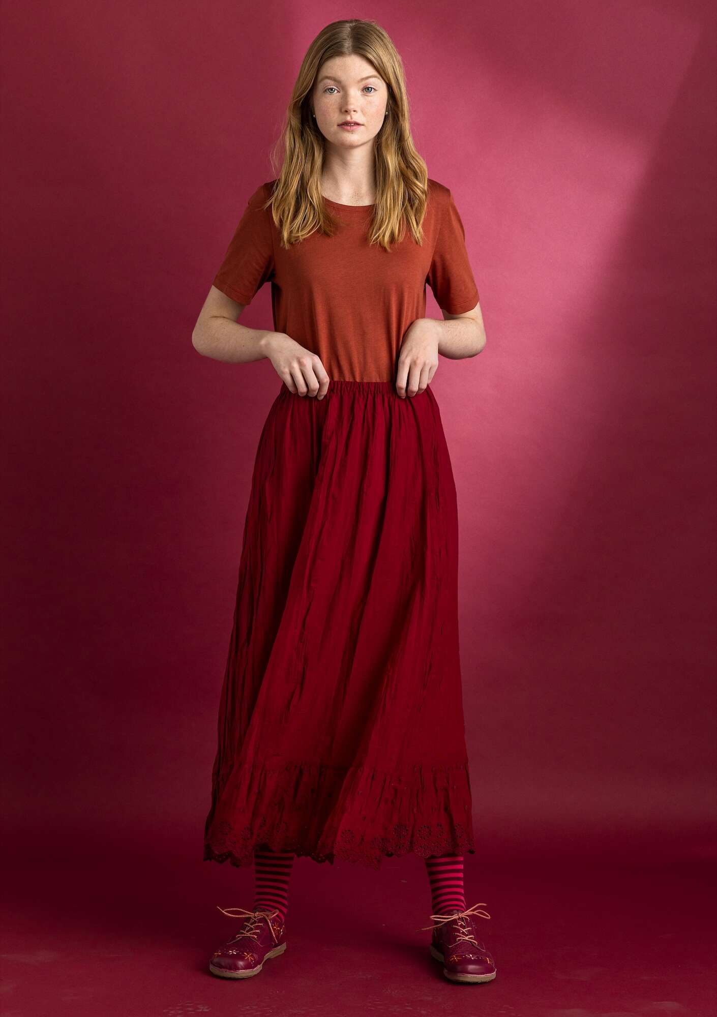 - 100% cotton. The cotton is certified organic. The entire production chain is certified to be environmentally friendly. Machine wash warm, delicate cycle. Medium iron. Shrinkage 2-3%. Made in Delhi, India.