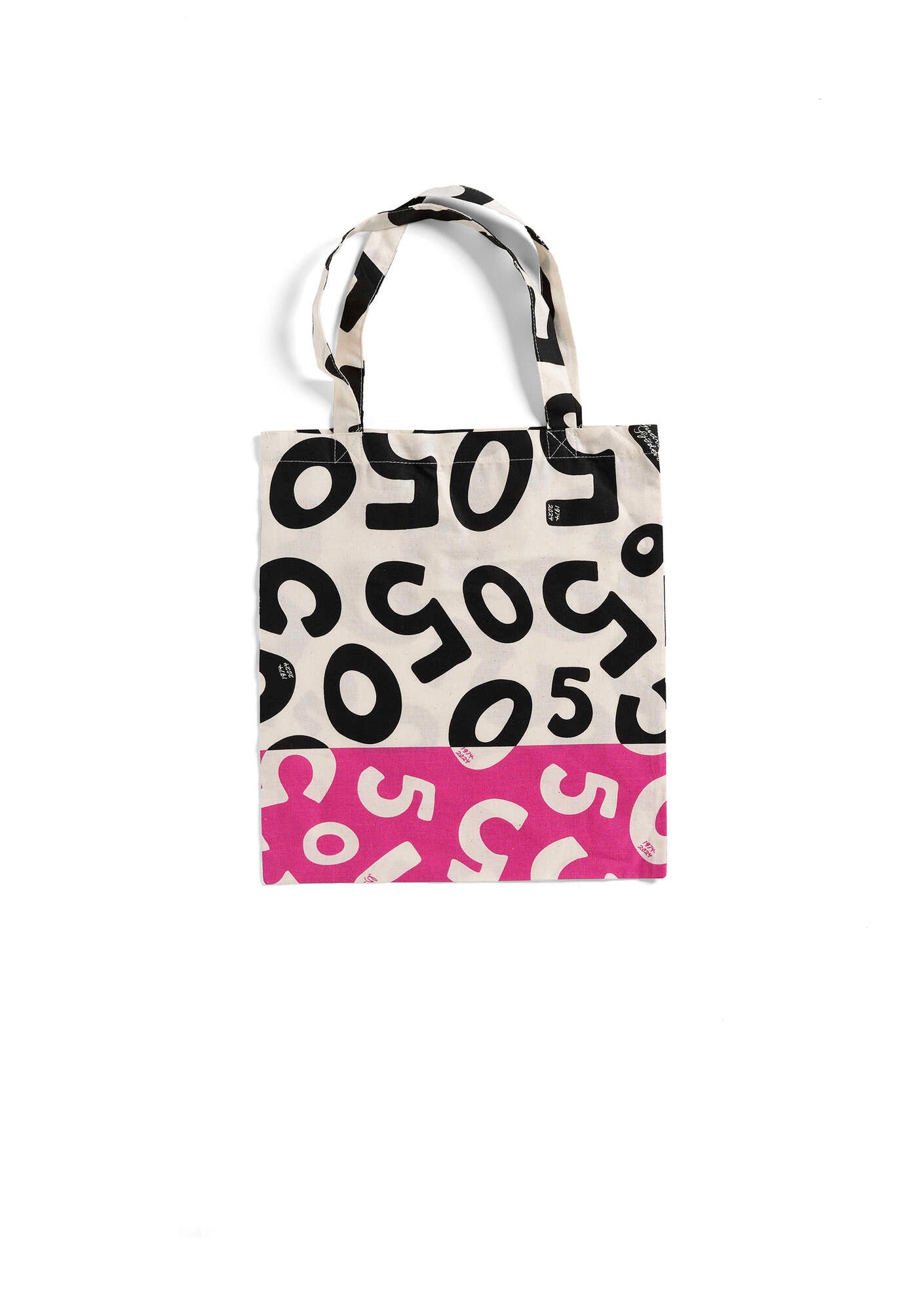 - Fabric tote bag with a printed pattern of numbers in celebration of the 50-year anniversary of Gudrun Sjödén. Slightly smaller square style, with two handles.Size and Measurement