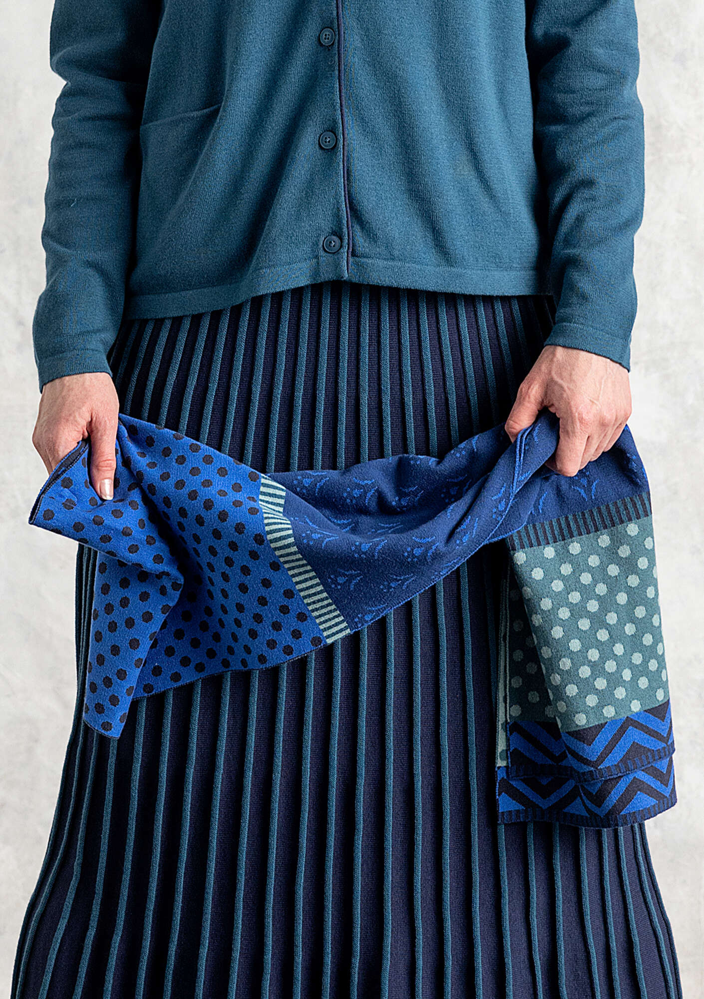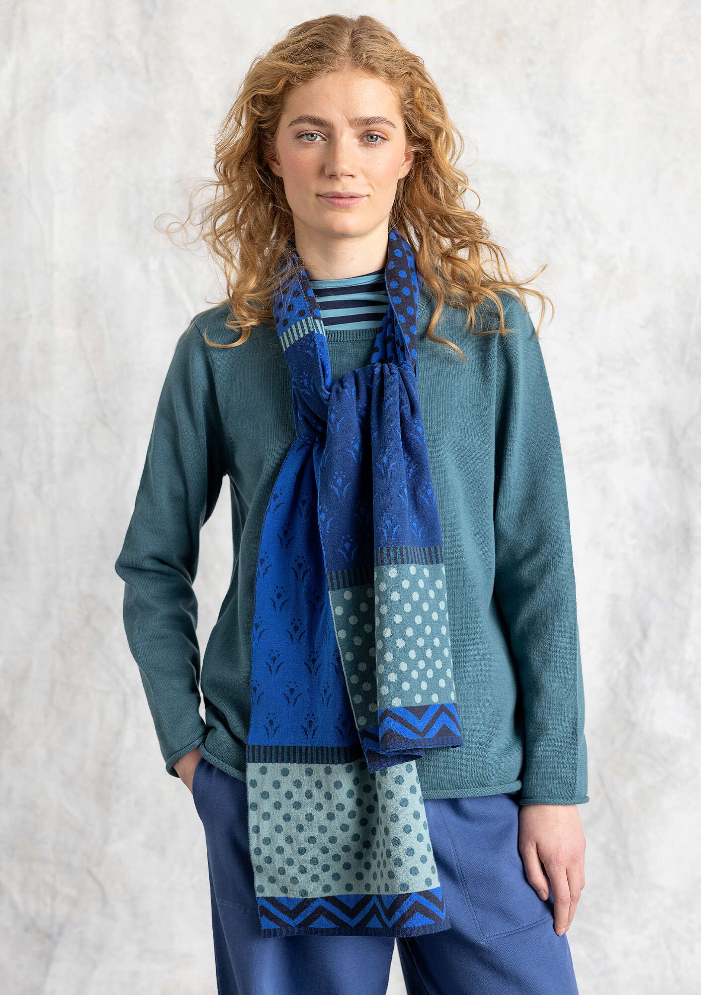- Jacquard-knit scarf in soft cotton. The colors are reversed on the front and back, thanks to the double-sided jacquard pattern, making both sides equally beautiful.Size and Measurement